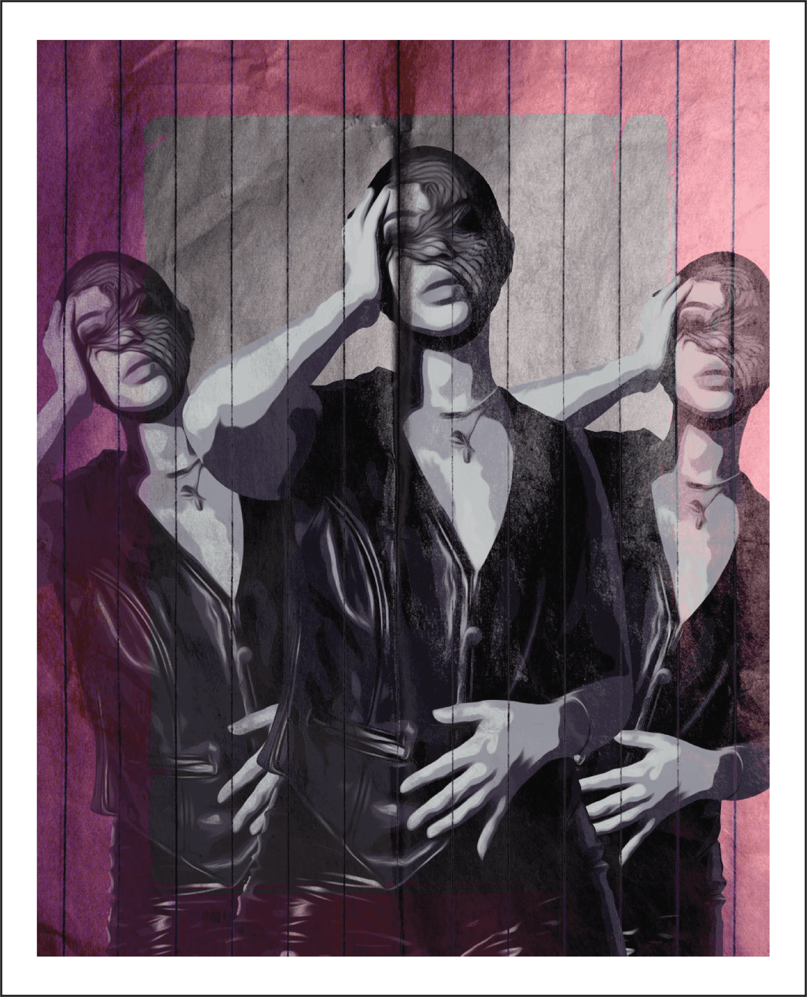 A portrait of mental fragmentation, revealing the multiple layers of a silent struggle.